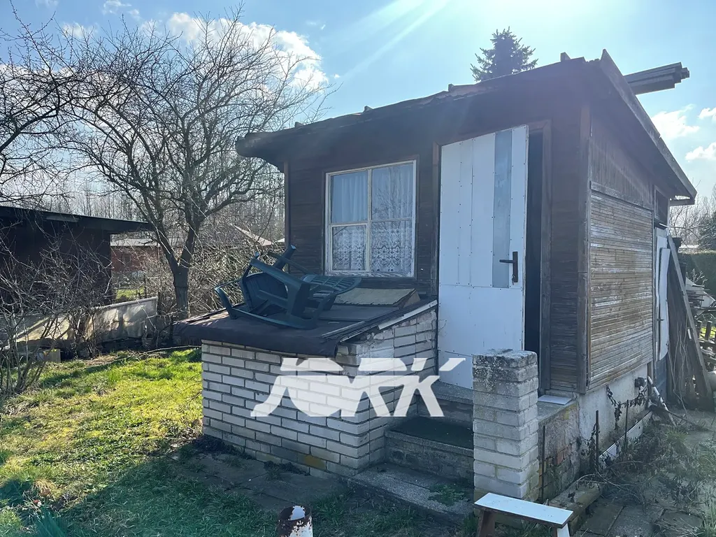 Zahrádka o výměře 313 m2 je v uzavřené zahrádkářské kolonii, na pozemku se nachází malá chatka na vlastní stavební parcele o výměře 6 m2, ovocné stromy, záhony.