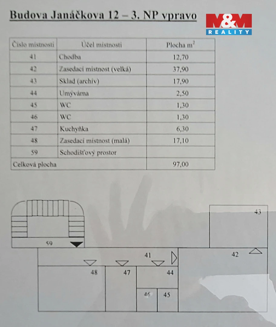 Pronájem kancelářského prostoru, 97 m², ul. Janáčkova