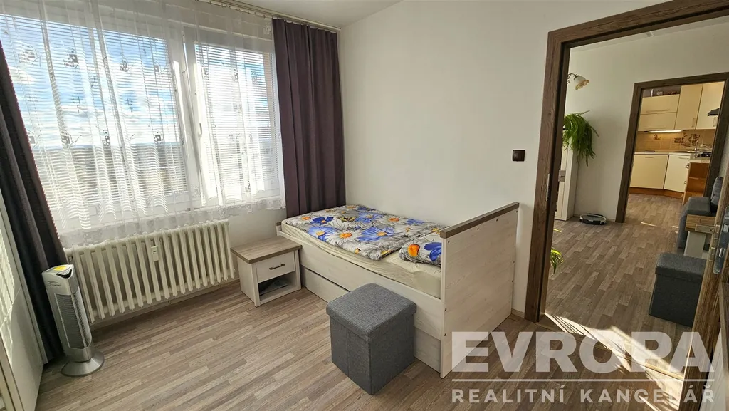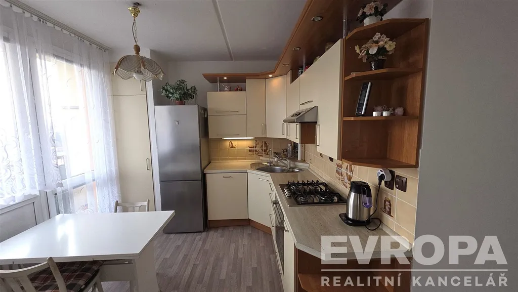 Tento světlý a prostorný byt 3+1 o celkové užitné ploše 76 m² se nachází ve 13. patře čtrnáctipatrového domu s dvěma výtahy. Dispozičně byt disponuje dvěma ložnicemi, obývacím pokojem spojeným s kuchyní, koupelnou a samostatným WC. K bytu náleží také sklep o velikosti 2 m² a lodžie o ploše 3 m², což umožňuje pohodlné posezení s krásným výhledem na město. Je zde možnost využívat sušárnu na patře.