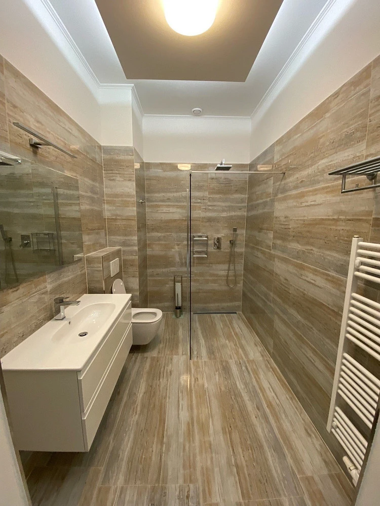 Vinylová podlaha a dlažba s vysokým leskem, nová špaletová okna.
