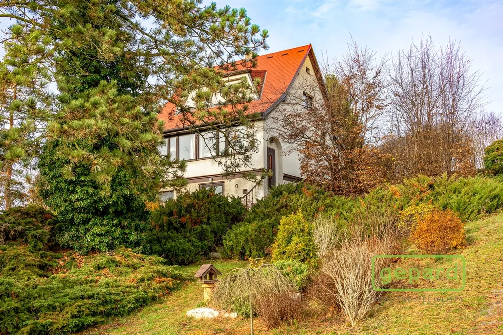 Součástí je také garáž zapuštěná ve spodní části pozemku a několik parkovacích stání.