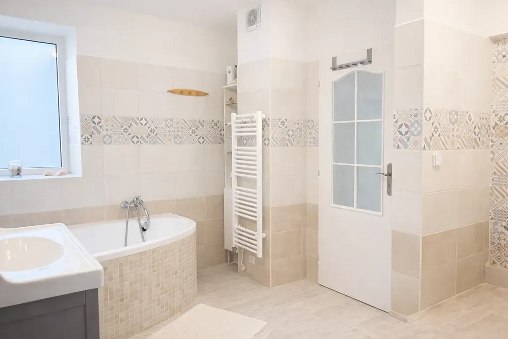 Užitná plocha domu činí přibližně 150 m and sup2;. Dům je ve velmi dobrém technickém stavu. Dispozice nabízí obývací pokoj, samostatnou kuchyni, tři pokoje, dvě koupelny (vana i sprchový kout), technickou místnost (prádelnu) a dostatek úložných prostor.