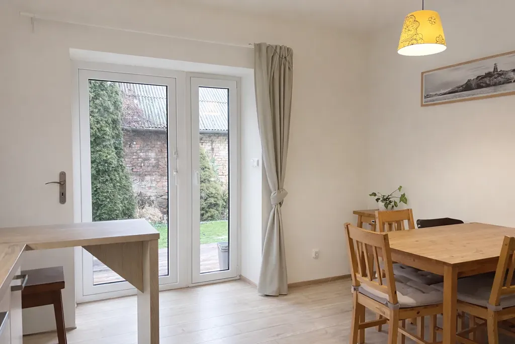 Součástí je bývalý vejminek, ve kterém je vybudována letní kuchyň a další místnost využívaná jako kancelář, vhodná například pro home office nebo podnikání (aktuálně není na fotografiích).