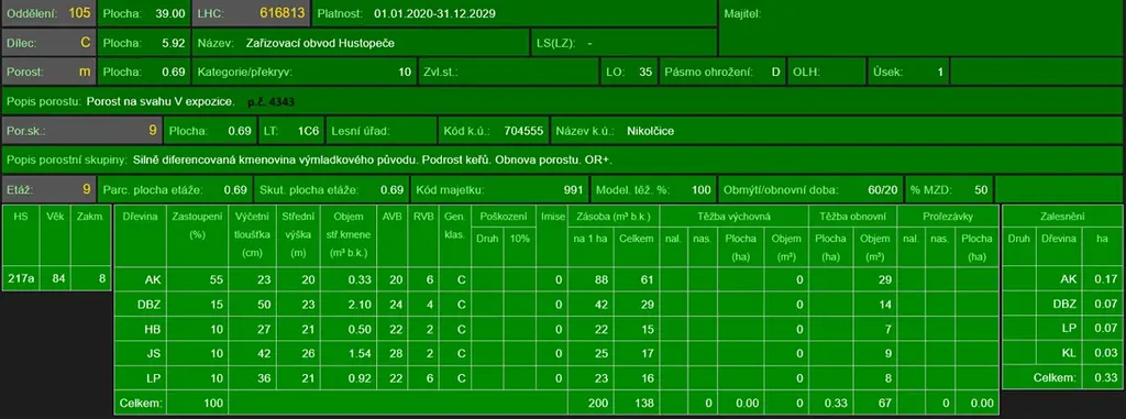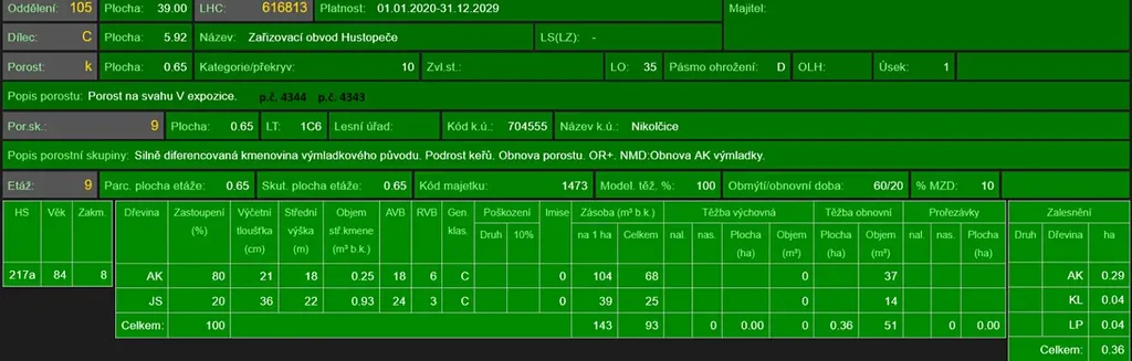 - p.č. 4344 vedená jako lesní pozemek o celkové výměře 6 666 m2, z toho vlastníme podíl 1/2 tedy 3 333 m2 (stáří lesa 90 let - zastoupení dřevin akát, jasan),