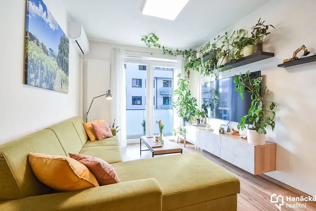 Interiér je promyšlen do posledního detailu a koncipován pro náročné uživatele. Byt je možné si pronajmout nevybavený či kompletně zařízený nábytkem (dle přiložených fotografií) a spotřebiči. O tepelný komfort se v letních i zimních měsících stará výkonná klimatizace (3,5 kW), doplněná v ložnici o žaluzie den/noc a zatemňovací závěsy pro nerušený spánek. Obývacímu prostoru dominuje Smart TV Samsung s úhlopříčkou 65".