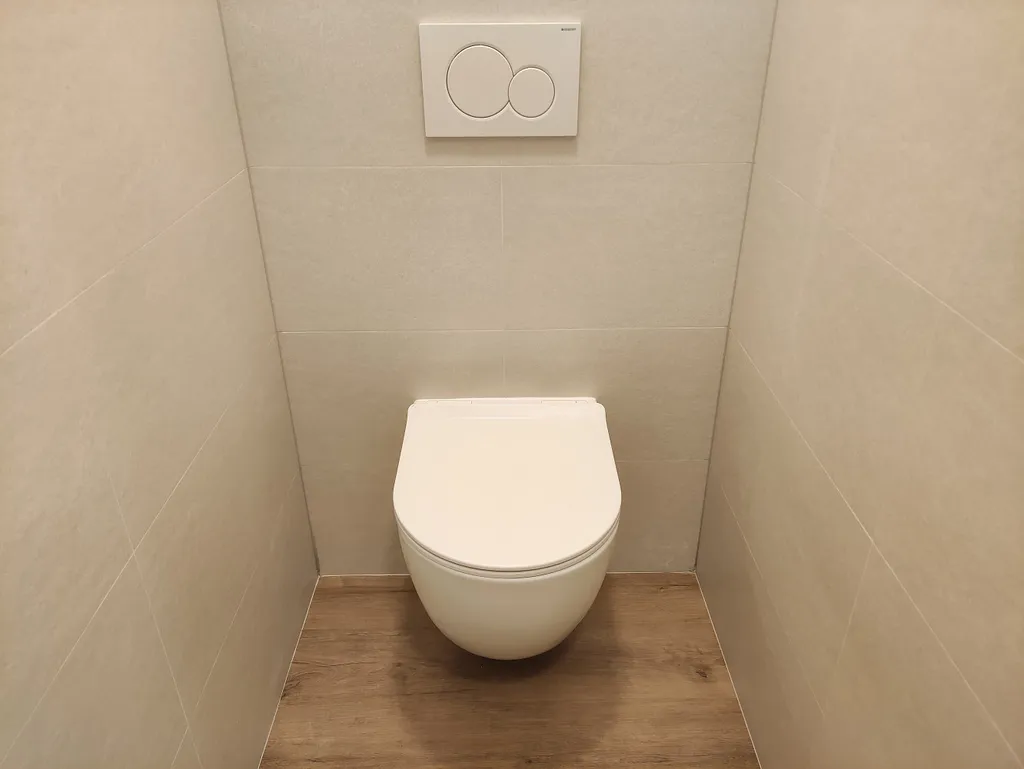 Koupelna se sprchovým koutkem, WC zvlášť. Okna směřují na jih.