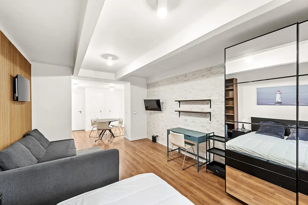Byt disponuje obývacím pokojem s moderním nábytkem a infrapanelem pro příjemné vytápění. Kuchyň je vybavena spotřebiči, konkrétně lednicí s mrazákem, troubou, mikrovlnnou troubou, digestoří a myčkou nádobí. Součástí bytu je také technická místnost s pračkou, koupelna s prostorným walk-in sprchovým koutem a samostatná toaleta.