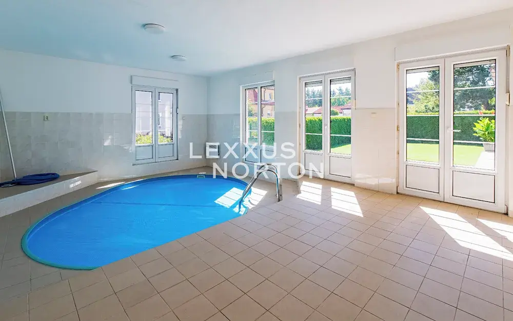 V přízemí domu se nachází vstupní hala, plně vybavená kuchyň se spotřebiči, jídelna, prostorný obývací pokoj s krbem a přímým vstupem na zahradu, ložnice, koupelna, samostatná toaleta a vnitřní bazén. V patře je k dispozici pět ložnic, koupelna, samostatná toaleta a balkon. Vila poskytuje dostatek prostoru i soukromí a je ideální pro rodinné bydlení v příjemném a klidném prostředí.