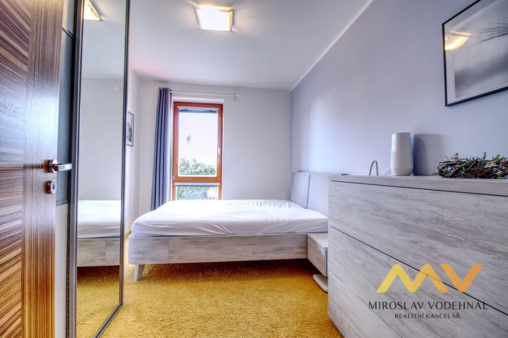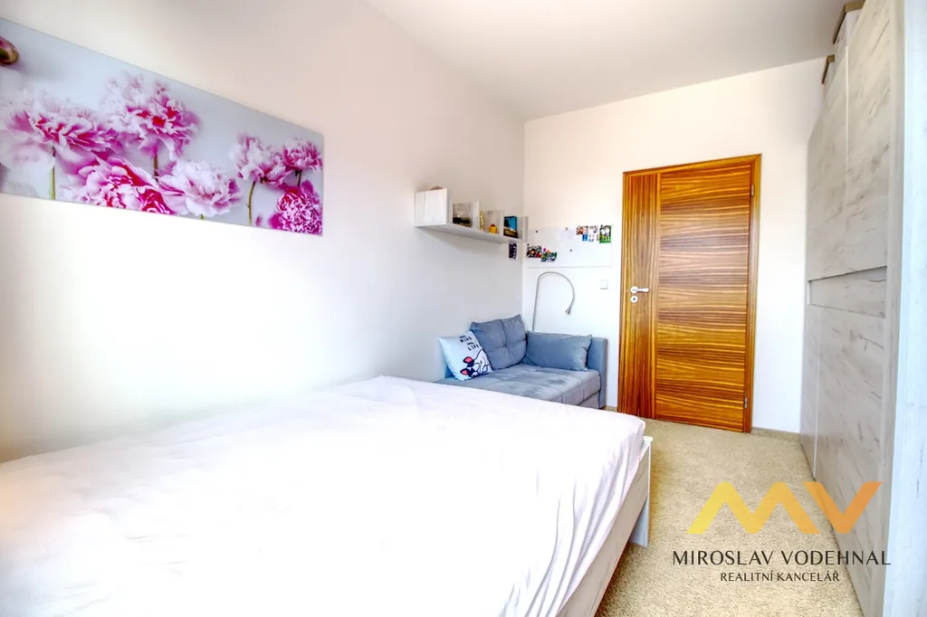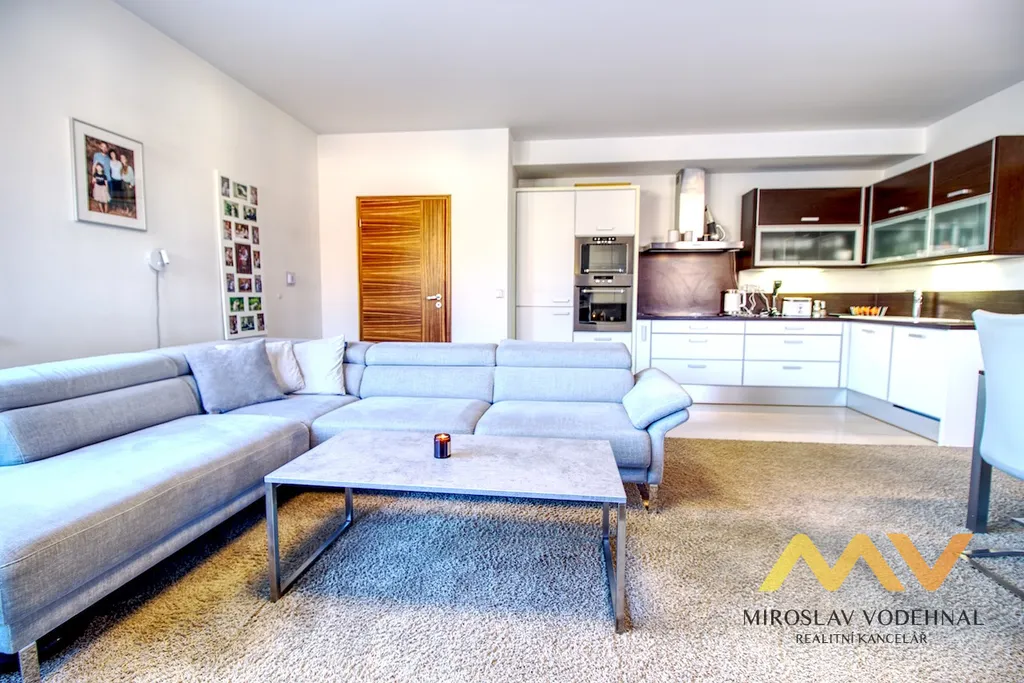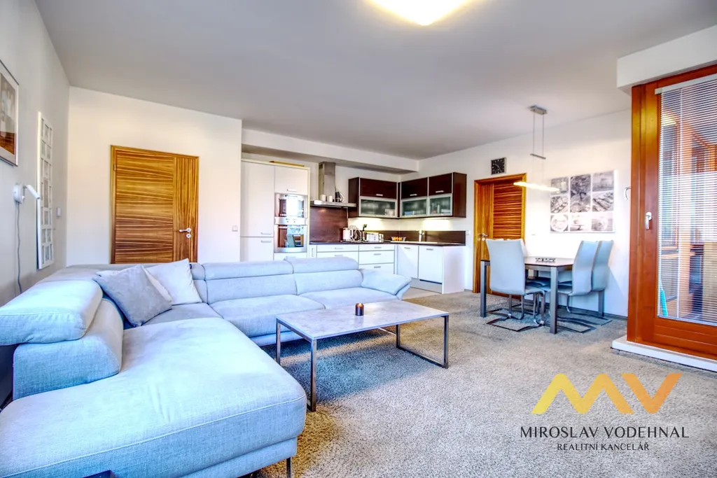 Dispozice bytu byla navržena s důrazem na funkčnost i pohodlí každodenního života. Dominantou je velkorysý obývací prostor plynule propojený s kuchyňským koutem, který je vybaven moderní kuchyňskou linkou na míru včetně kompletní sady vestavěných spotřebičů. Tři samostatné, neprůchozí pokoje nabízejí dostatek prostoru pro rodinné bydlení, práci z domova i soukromí jednotlivých členů domácnosti. Samozřejmostí jsou rozsáhlé úložné prostory v podobě vestavěných skříní a praktická komora s regálovým systémem.