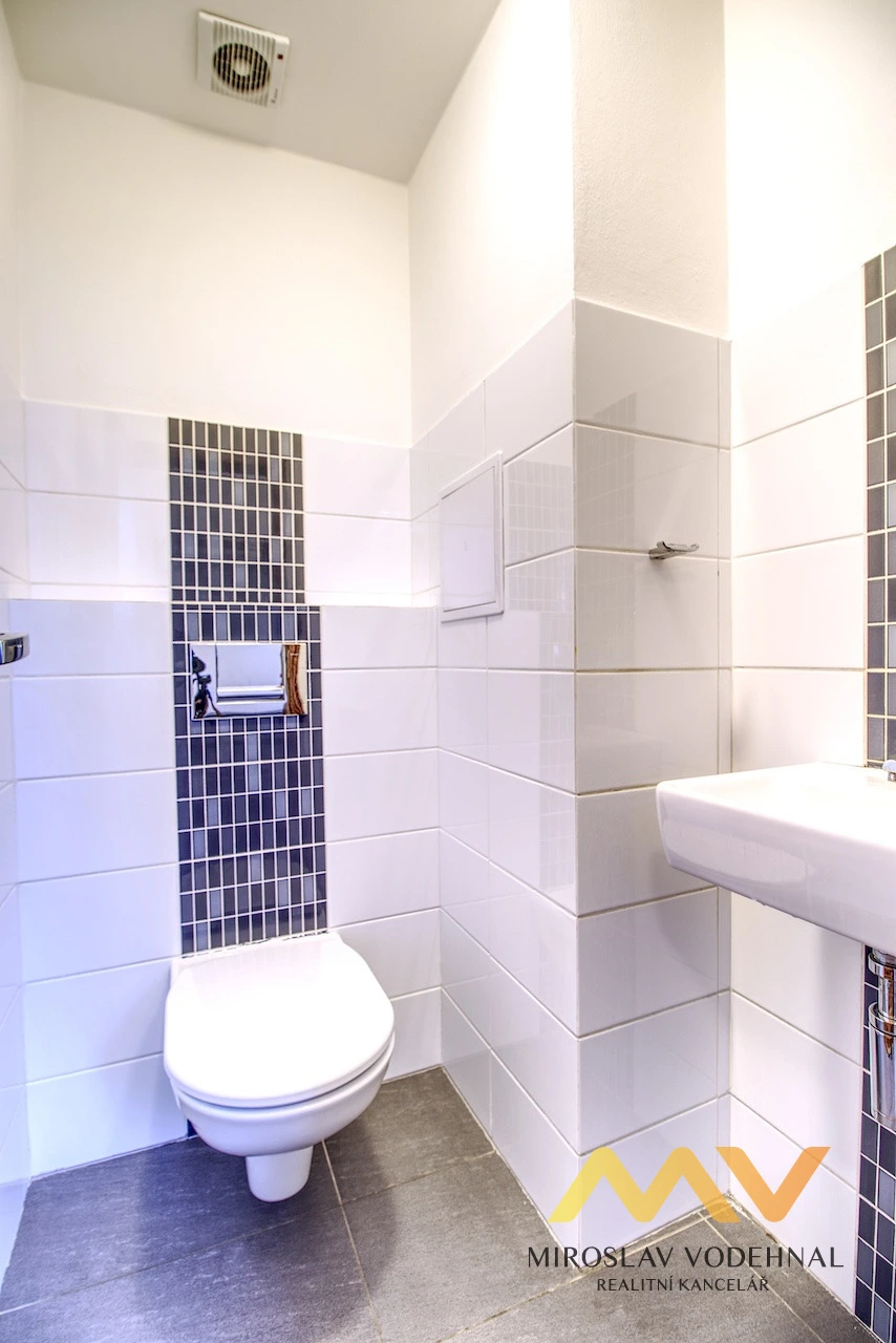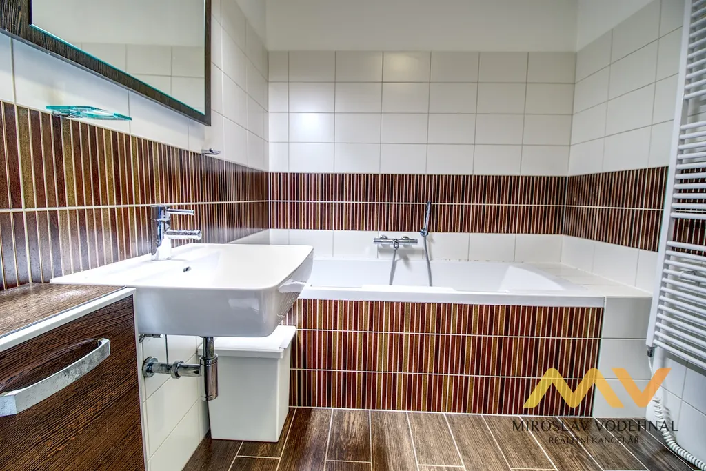 Byt disponuje dvěma sociálními zázemími – koupelnou s vanou, prostorem pro pračku i sušičku a samostatným WC. Lodžie o velikosti cca 5 m², přístupná z obývacího pokoje, poskytuje příjemné místo k odpočinku s výhledem do klidného okolí.