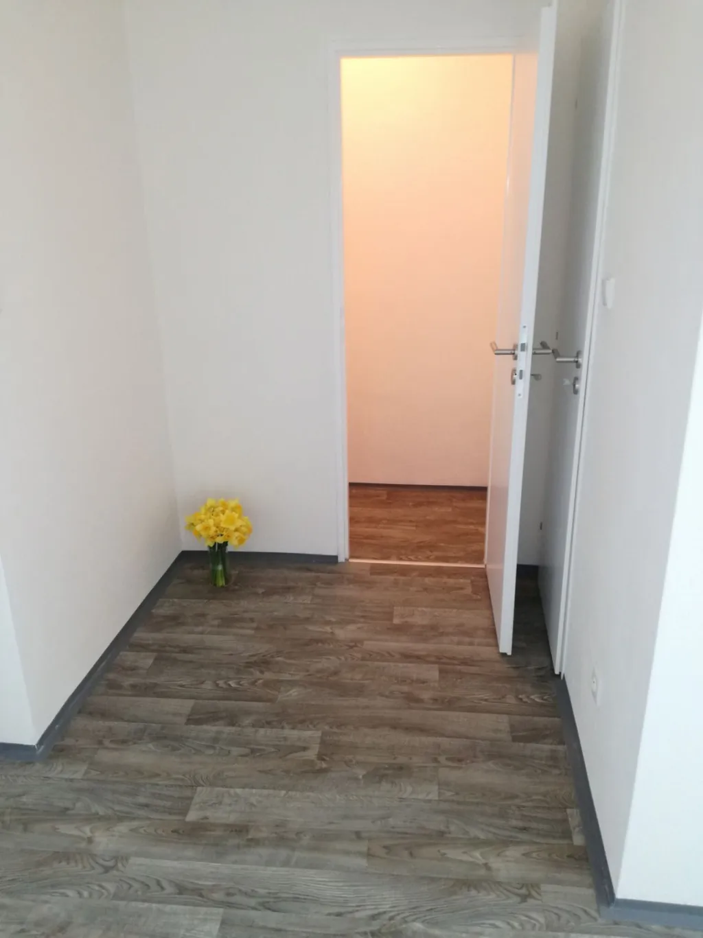 Byt má vyzděné jádro, nové podlahy, rozvody, omítky, nové interiérové dveře.
