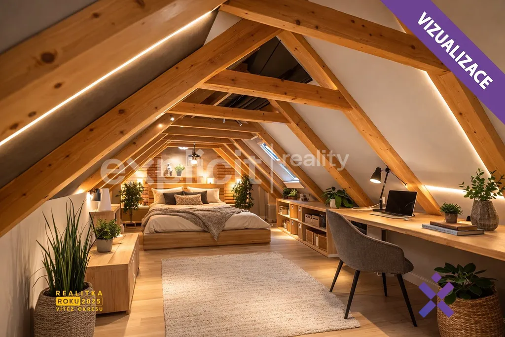 Po levé straně se nachází pokoj, který je ideální jako ložnice nebo dětský pokoj. Vedle tohoto pokoje je koupelna, která je vybavena sprchovým koutem, topným žebříkem a součástí je také WC.