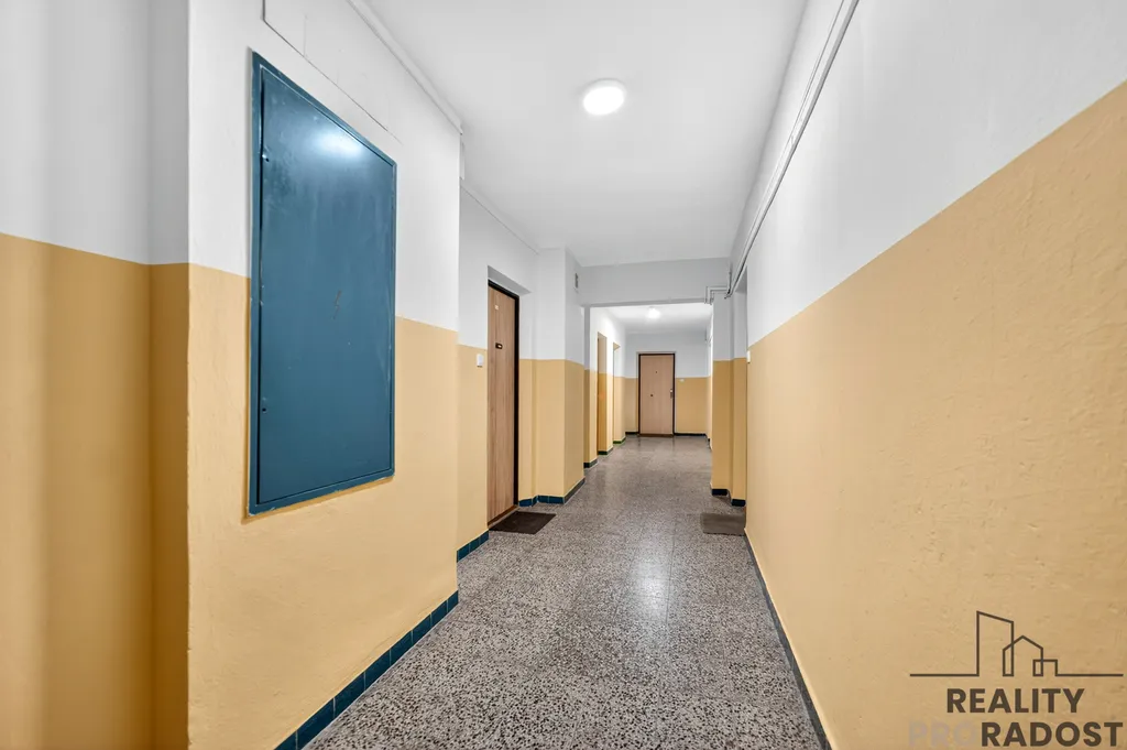 Byt je situován v 8. patře bytového zatepleného domu, ve kterém jsou k dispozici dva výtahy (osobní i nákladní), což zajišťuje pohodlný přístup.