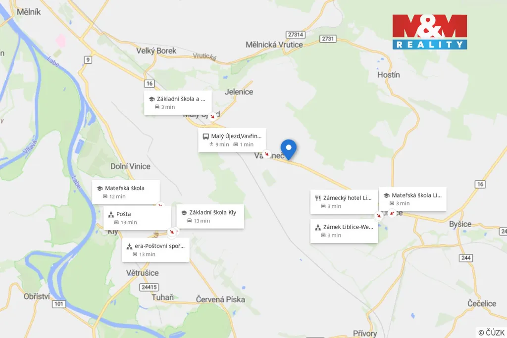 Lokalita nabízí klidné bydlení v přírodě s výbornou dostupností do Prahy – cca 30 minut jízdy autem, v blízkosti město Mělník se všemi službami.