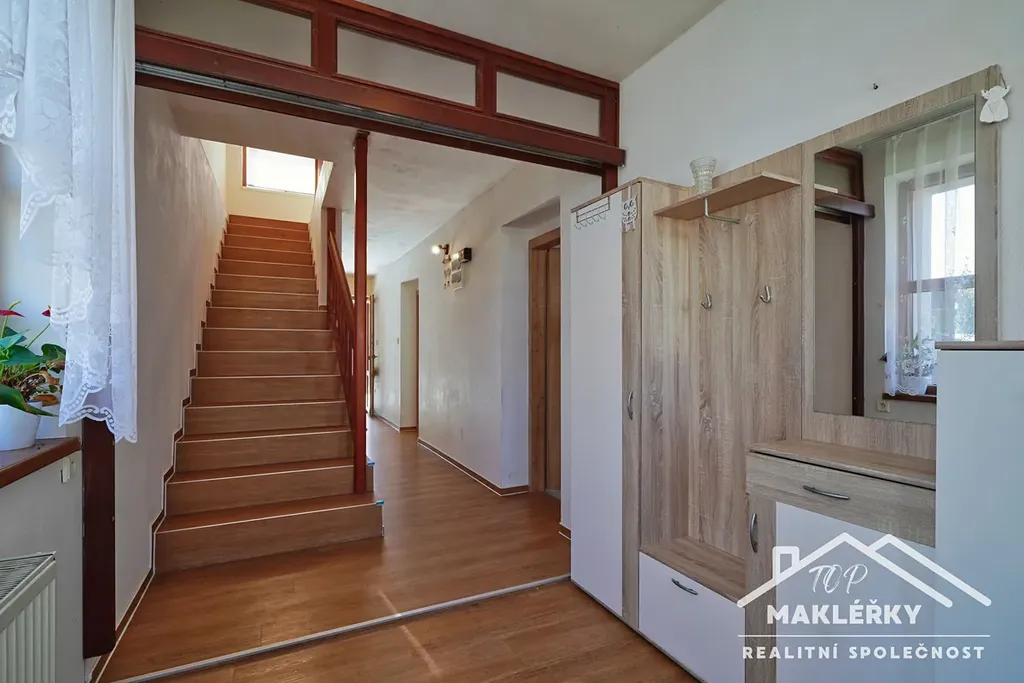 Po chodníčku za vrátky vcházíme do domu s kamennou podestou. Předchodba a následná