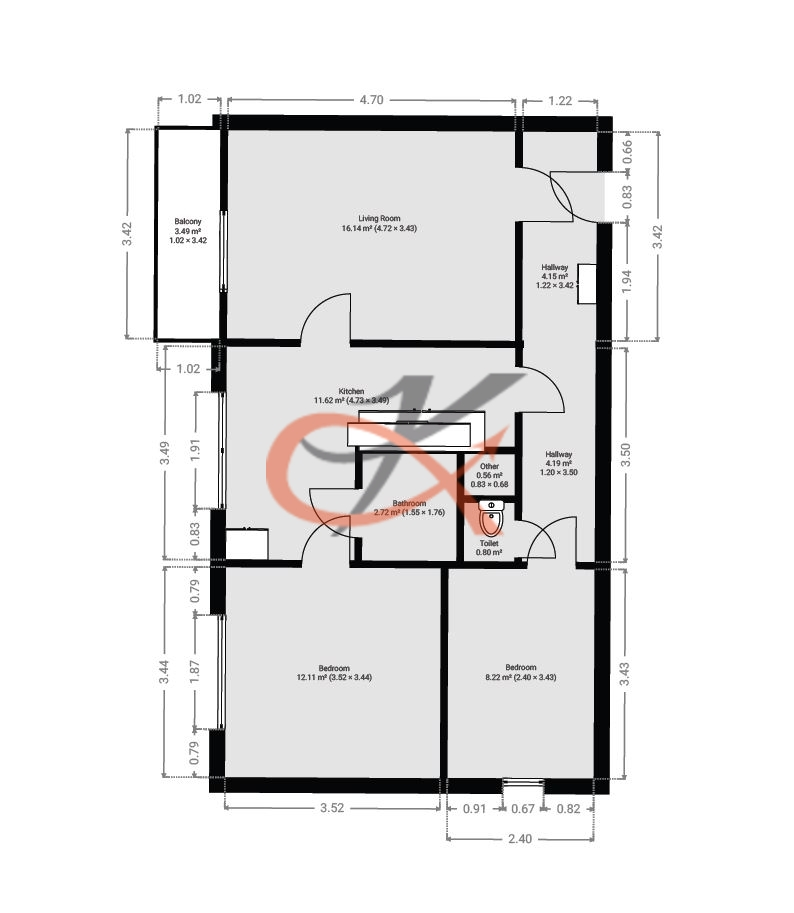 Byt v osobním vlastnictví o podlahové ploše 68m² se nachází v sedmém patře. Sestává ze tří neprůchozích pokojů, kuchyně s jídelním koutem, koupelny s vanou a s WC a chodby. K dispozici sklepní kóje a balkón se západní orientací. Jednotka je vyklizená a vyčištěná, tak jak je zachyceno na fotografiích a připravená ihned k dalšímu užívání. Vratná kauce 24.000kč.