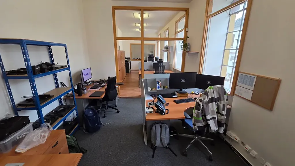 Dispozice: Celková užitná plocha 80m² Vybavenost: k dispozici všechny inženýrské sítě, prostory jsou vytápěné a klimatizované. K prostoru je možné si pronajmout parkovací místa za poplatek. Parkování pro hosty je možné na veřejném parkovišti v areálu.
