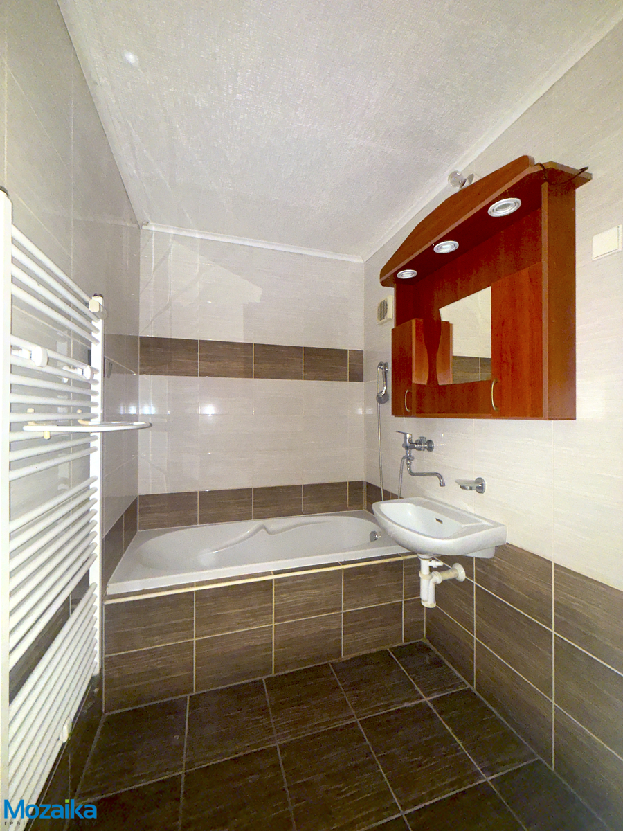Celková užitná plocha bytu činí 69 m², přičemž prostory jsou rozvrženy velmi prakticky a funkčně. Po vstupu do bytu vás přivítá prostorná chodba o velikosti 4,40 m² s vestavnou skříní, která nabízí dostatek úložného prostoru pro každodenní potřeby. Samostatné WC o ploše 1,30 m² a koupelna s vanou a umyvadlem o ploše 3,20 m² zajišťují pohodlné hygienické zázemí. Kuchyně o výměře 10,26 m² je vybavena kuchyňskou linkou se sporákem, takže je připravena k okamžitému užívání. Srdcem bytu je pak velkorysý obývací pokoj o ploše 25 m², ze kterého je přímý přístup na lodžii o velikosti 4,50 m² – ideální místo pro ranní kávu, odpočinek nebo pěstování oblíbených rostlin. Ložnice o ploše 21 m² nabízí dostatek prostoru pro komfortní spaní a ukládání osobních věcí.