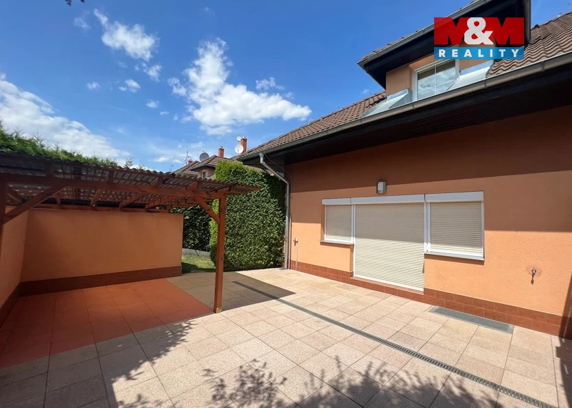 Pronájem prostorného krajního řadového domu 4+kk v oblíbené a klidné rezidenční lokalitě Jesenice–Osnice, ideální pro pohodlné rodinné bydlení. Třípodlažní dům zaujme promyšlenou dispozicí i dostatkem prostoru. V přízemí je dvougaráž s přímým vstupem do domu, praktická technická místnost, komora a WC (další parkovací stání před domem). Dominantou 1. patra je světlý obývací prostor s jídelnou a plně vybavenou kuchyní s komorou, odkud vstoupíte jak na balkón s výhledem do zeleně, tak na prostornou terasu s pergolou a navazující zahradou, orientovanou na jih – ideální místo pro relax i setkání s přáteli. Na tomto podlaží je také samostatné WC. Komfort zvyšují venkovní žaluzie a klimatizace. Ve 2. patře jsou 3 útulné ložnice, koupelnu s vanou i sprchou a samostatné WC, dále vstup do půdních prostor. Díky tomu, že jde o krajní dům, lze jít na zahradu bez nutnosti procházet domem. Bonusem jsou 2 zahradní domky s možností vybudování sauny. Pronájem 42.000 Kč + 3.000 Kč voda měs. Kauce 2 nájmy