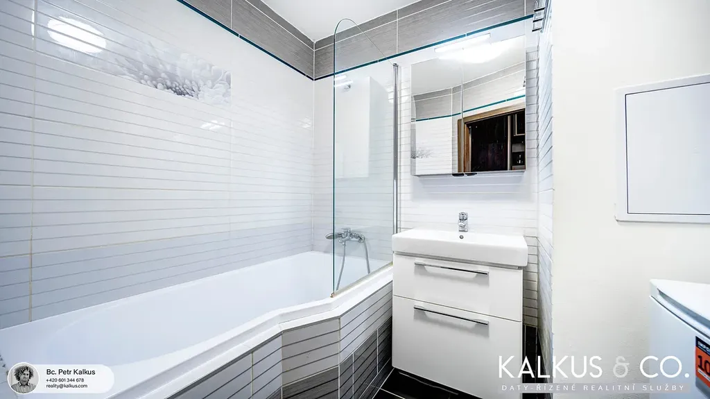 Byt prošel v roce 2018 kompletní rekonstrukcí realizovanou na zakázku stavební firmou a je ve velmi dobrém stavu. Ve zděném jádru se nachází koupelna s vanou a prostorem pro pračku i sušičku, toaleta je oddělená. Byla provedena nová elektroinstalace včetně nové rozvodné skříně, devíti samostatných okruhů a výchozí revize. Rozvody vody jsou v plastu. Podlahy s vinylovými click dílci byly vyrovnány samonivelační stěrkou a doplněny izolační podložkou. Kuchyňská linka vyrobená na míru je vybavena vestavnými spotřebiči včetně myčky nádobí a indukční varné desky, připravena je také instalace pro vestavnou horkovzdušnou troubu. Plastová okna jsou orientována na jihozápad (ložnice / dětský pokoj) a severovýchod (kuchyně a obývací pokoj). K dispozici je vysokorychlostní internet, kolárna a sklepní kóje.