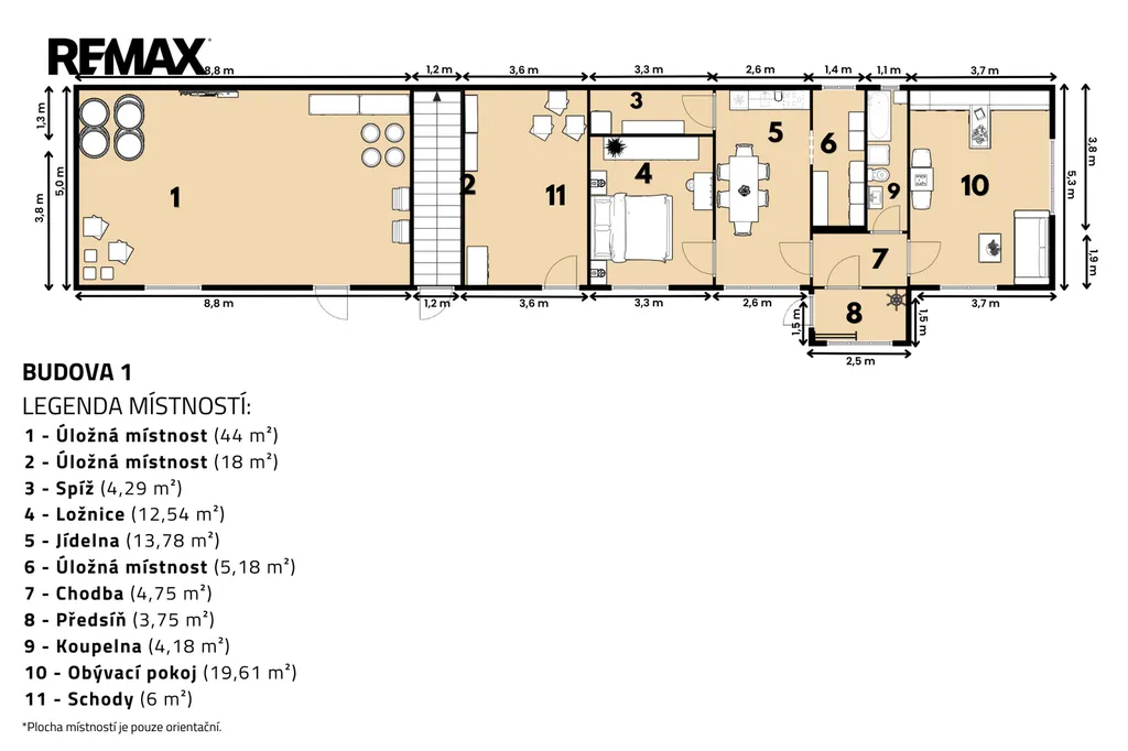 Velké půdní prostory (165 m² + 32 m²) – ideální pro vestavbu bytů, ateliérů nebo rozšíření obytné plochy.