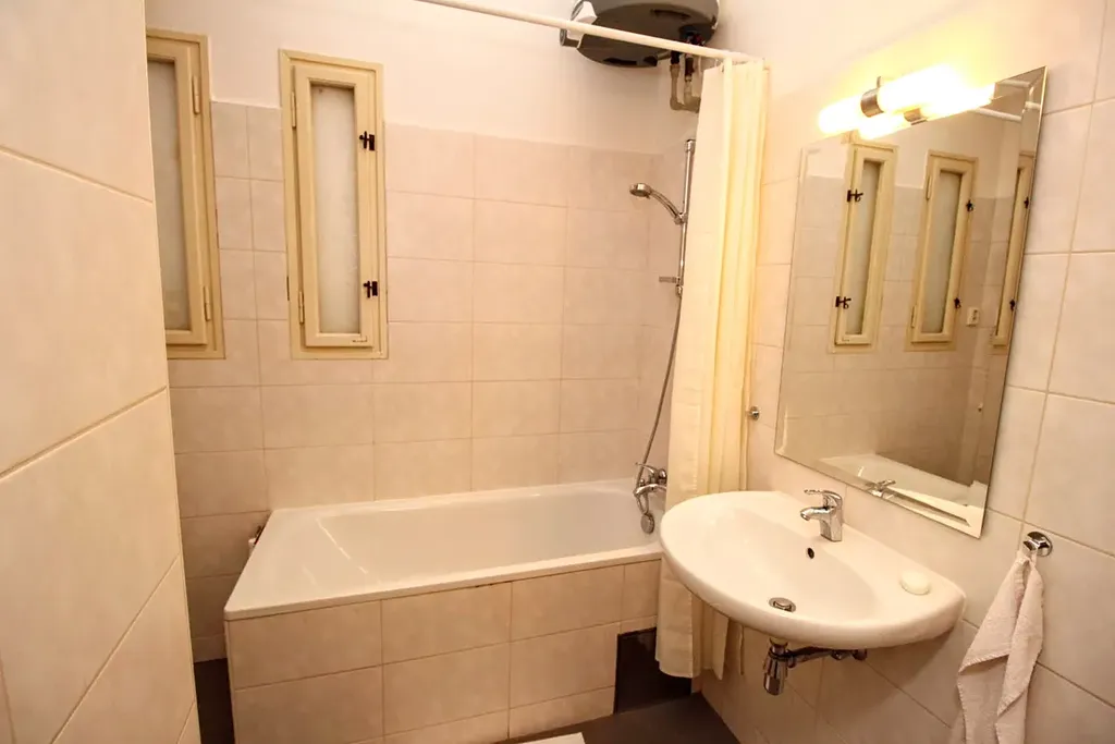 Byt je vytápěn přímotopy, horká voda je ohřívána elektrickým bojlerem. Do bytu je přiveden plyn.
