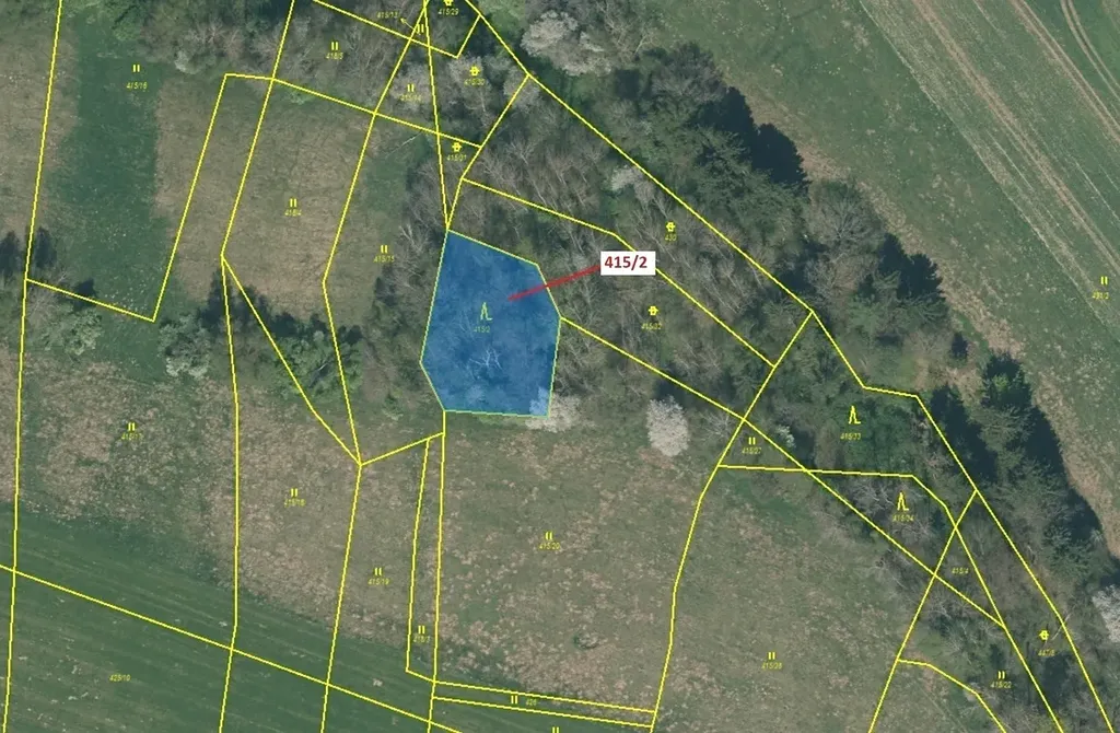Lesní pozemek o výměře 1251 m2, parcelní číslo 415/2, podíl 1/1, katastrální území Tříklasovice, obec Psárov, obec s rozšířenou působností Tábor, okres Tábor, Jihočeský kraj. Po těžbě.