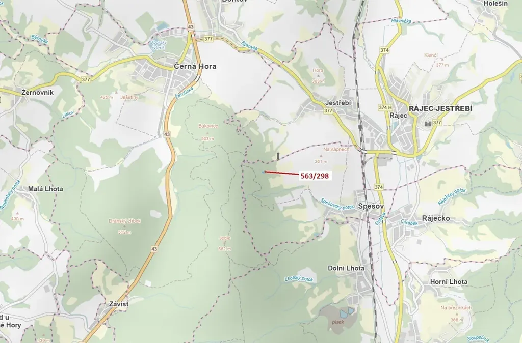 Lesní pozemek o výměře 1372 m2, parcelní číslo 563/298, podíl 1/1, katastrální území Spešov, obec Spešov, obec s rozšířenou působností Blansko, okres Blansko, Jihomoravský kraj.