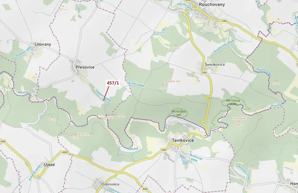 Dražba lesa, Přešovice, 4115 m2 (ID: 2580140)