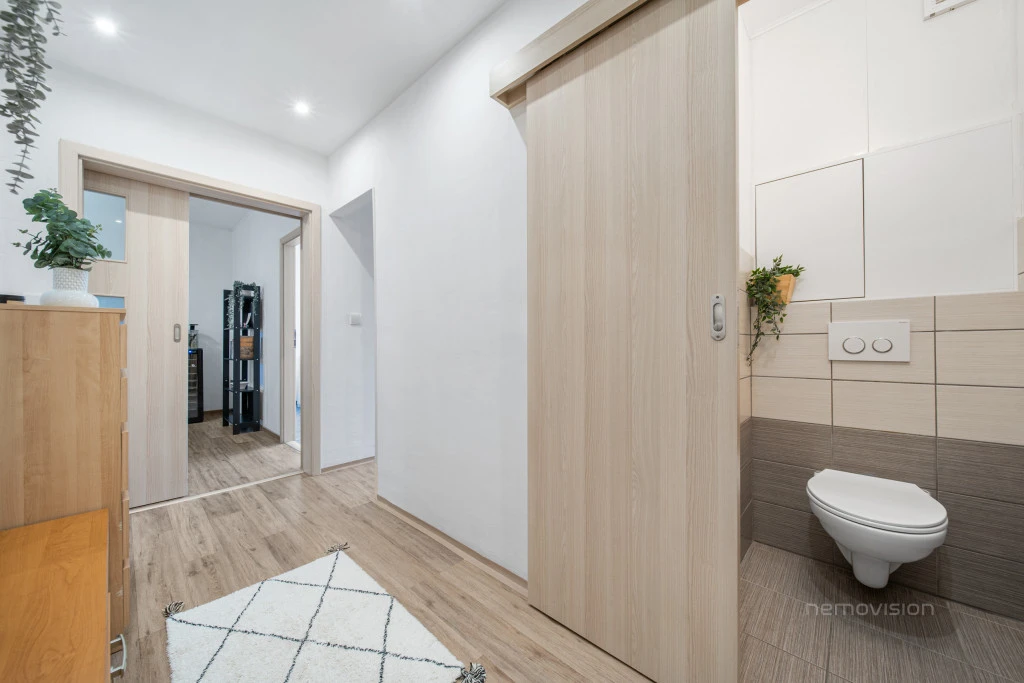 Byt se nachází v 6.NP a v roce 2015 prošel kompletní rekonstrukcí, díky které nabízí moderní a pohodlné bydlení. V rámci rekonstrukce bylo vybudováno nové bytové jádro se sprchovým koutem, instalována moderní rohová kuchyňská linka, nové posuvné dveře včetně zárubní, bezpečnostní vstupní dveře a prakticky řešený prostor.