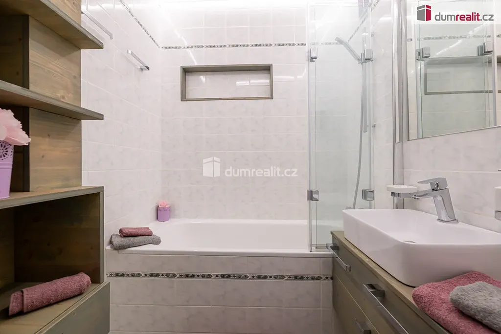 Byt se skládá ze vstupní chodby, které dominuje prostorná vestavěná skříň, obývacím pokojem, kuchyní s jídelnou, dvo neprůchozích pokojů, technickou místností, koupelnou a samostatným wc.e V ložnici je velká rohová šatna. Na oknech z ložnice a dětského pokoje jsou předokenní žaluzie. Přes obývací pokoj a kuchyň je zasklená lodžie, která je orientován na JZ. V bytě nové rozvody elektřiny.
