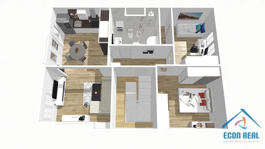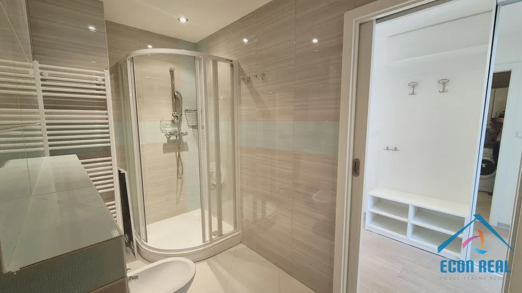 Společnost ECON REAL s.r.o. Vám nabízí pronájem prostorného, světlého a velmi příjemného bytu 3+1, o výměře 82 m2 , v cihlové vile v Praze 10 Strašnicích, s garáží (možnost 2 garáže) na oploceném pozemku. Byt se nabízí částečně vybaven a nabídne svým novým obyvatelům moderní kuchyňskou linku s veškerými spotřebiči (trouba, mikrovlnka, plynový sporák, digestoř, lednice s mrazákem, myčka...), jídelní stůl s židlemi, moderní rohovou sedačku, TV, koupelnu se sprchovým koutem, bidetem, toaletou a pračkou, manželskou postel v jedné z ložnic (není nutné ponechat) a dále dostatek úložných prostor jak vestavnými skříněmi v jedné z ložnic a šatnou v druhé ložnici, tak dalšími skříněmi v chodbě.
