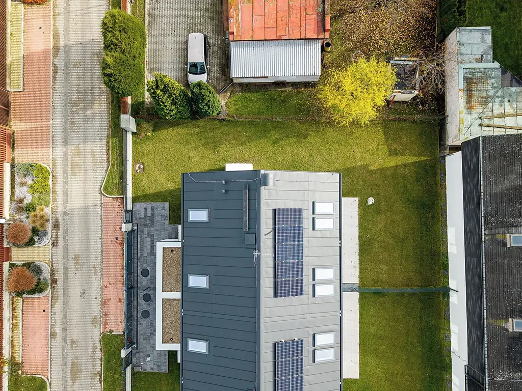 Dům s užitnou plochou 218 m² a pozemkem o 455 m² představuje dokonalou rovnováhu mezi prostorností, elegancí a technickou vyspělostí.