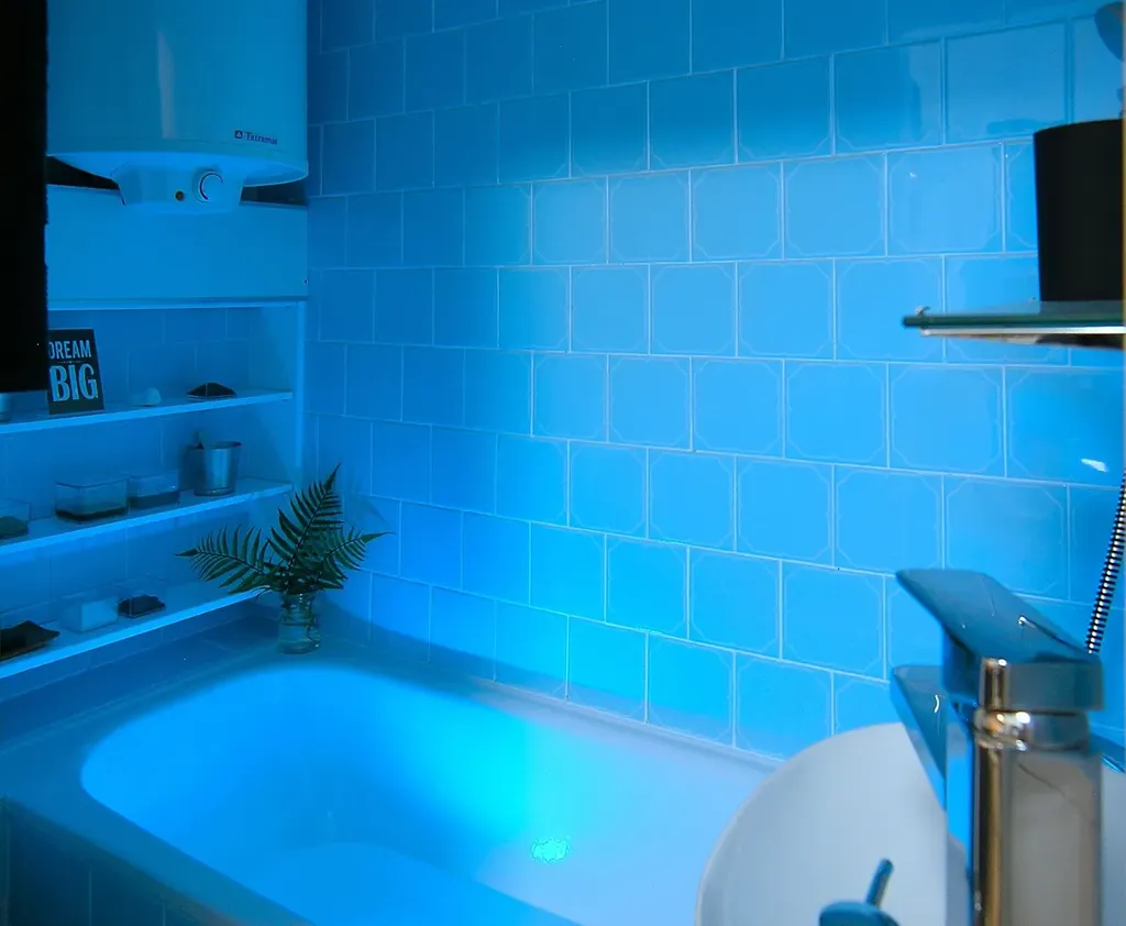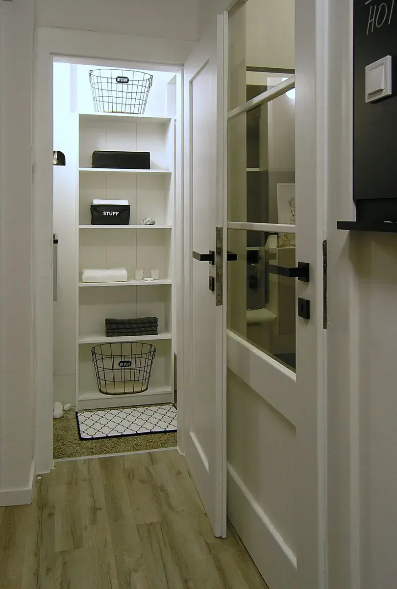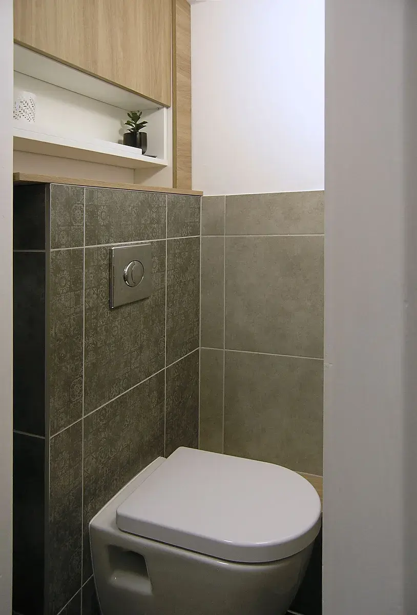 Byt se nachází v prvním patře, je vzdušný a slunečný, má velkou světlou předsíň s úložnými prostory a zrcadlem. WC i koupelna jsou umístěny odděleně. Koupelna disponuje vanou a moderním umyvadlem se skříňkou a nerezovou stojánkovou baterií (barvy osvětlení v koupelně lze měnit).