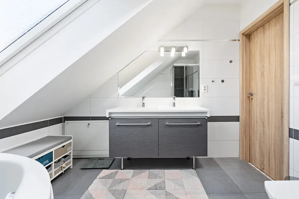 - nad chodbou prostorný půdní prostor pro uložení věcí či možnost vybudování mezonet místnosti