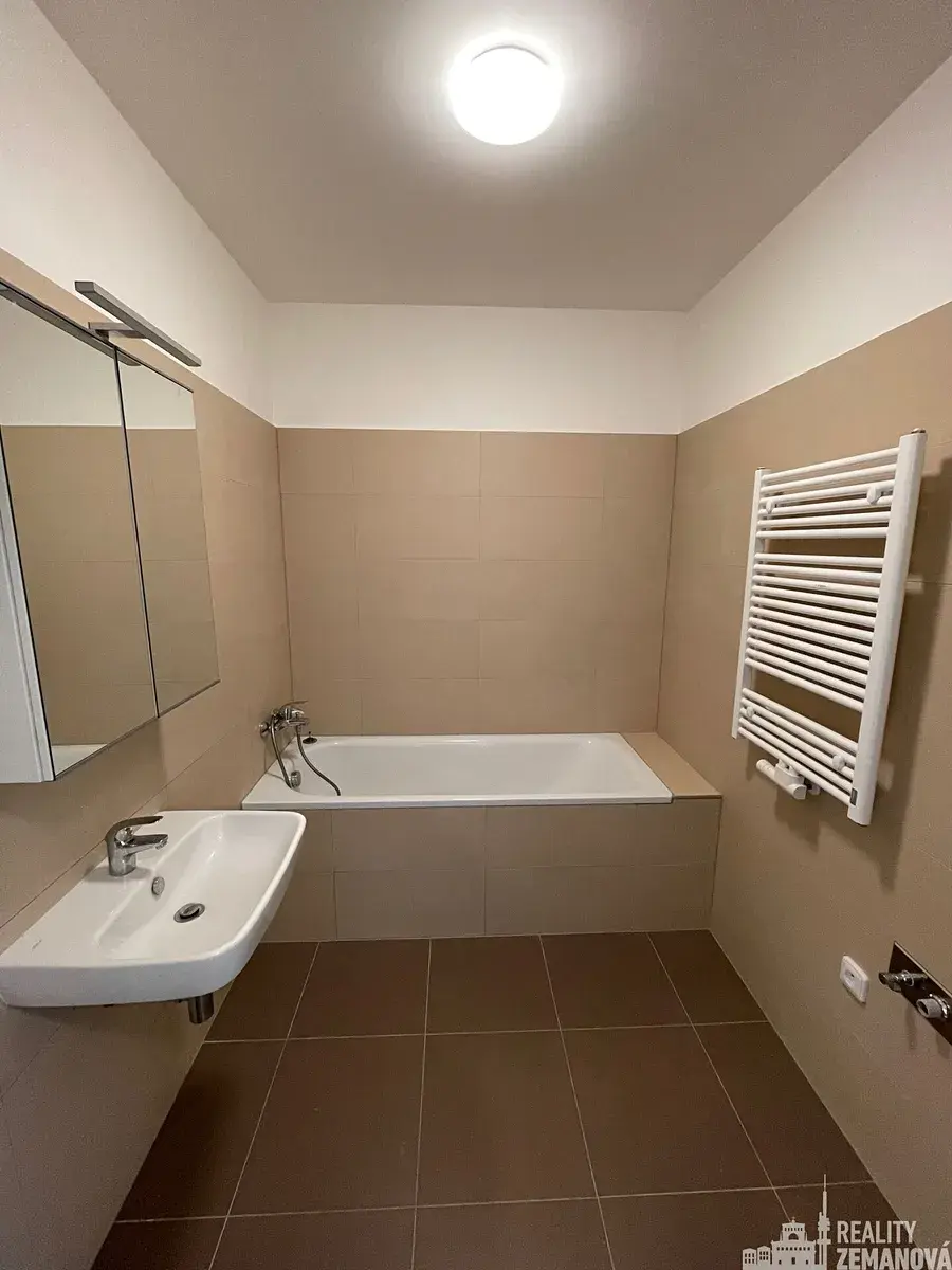 Nabízený nezařízený byt ve 3. NP/2.patře bez výtahu, je vybavený bílou kuchyňskou linkou (myčka, el. trouba, sklokeramická deska) s ostrůvkem/pultem včetně vestavné ledničky. Všude nová osvětlení, v koupelně horní zrcadlová skříňka s osvětlením.