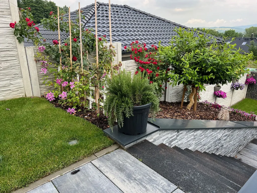 •zbytek terasy tvoří travní koberec s automatickým zavlažováním