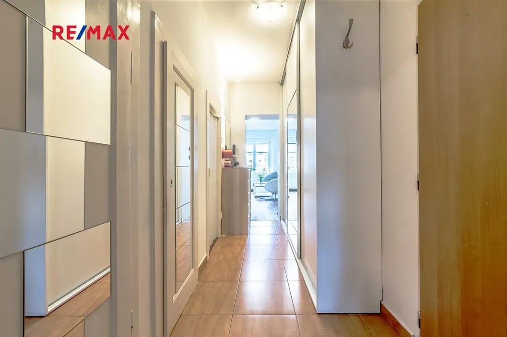 Byt nabízí velmi funkční dispozici. Najdete zde prostorný obývací pokoj s kuchyňským koutem, který poskytuje dostatek místa pro pohodlné vaření i odpočinek, dále ložnici s prostorem pro velkou šatní skříň i pracovní kout, koupelnu se sprchovým koutem a pračkou, samostatné WC a také komoru s praktickou vstupní chodbou.
