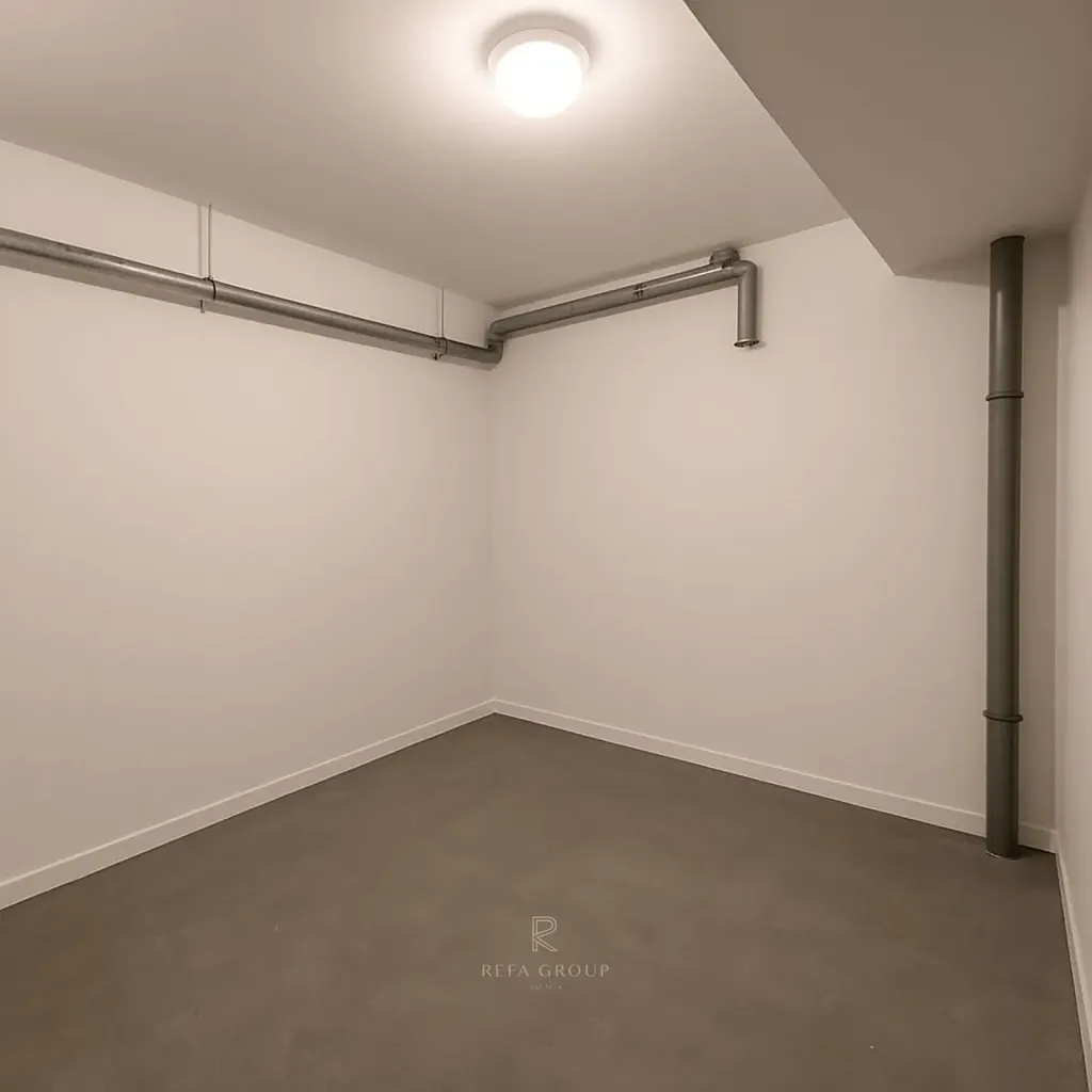 Součástí bytu je také velký sklep (12 m²), ideální pro kola, sportovní vybavení nebo sezónní věci, a venkovní parkovací stání, které je zahrnuto v ceně.
