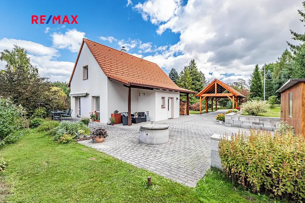 Dům je navržen tak, aby vám přinesl pohodlí i úsporu nákladů. Tepelné čerpadlo zajišťuje efektivní vytápění, vlastní studna (cca 8 metrů hluboká) dodává kvalitní vodu a venkovní část nabídne vše, co k pohodlnému bydlení patří – kryté stání pro dvě auta, zahradní boudu i příjemné posezení pro chvíle s přáteli nebo rodinou. Celek působí promyšleně a poskytuje dostatek komfortu pro každodenní život.