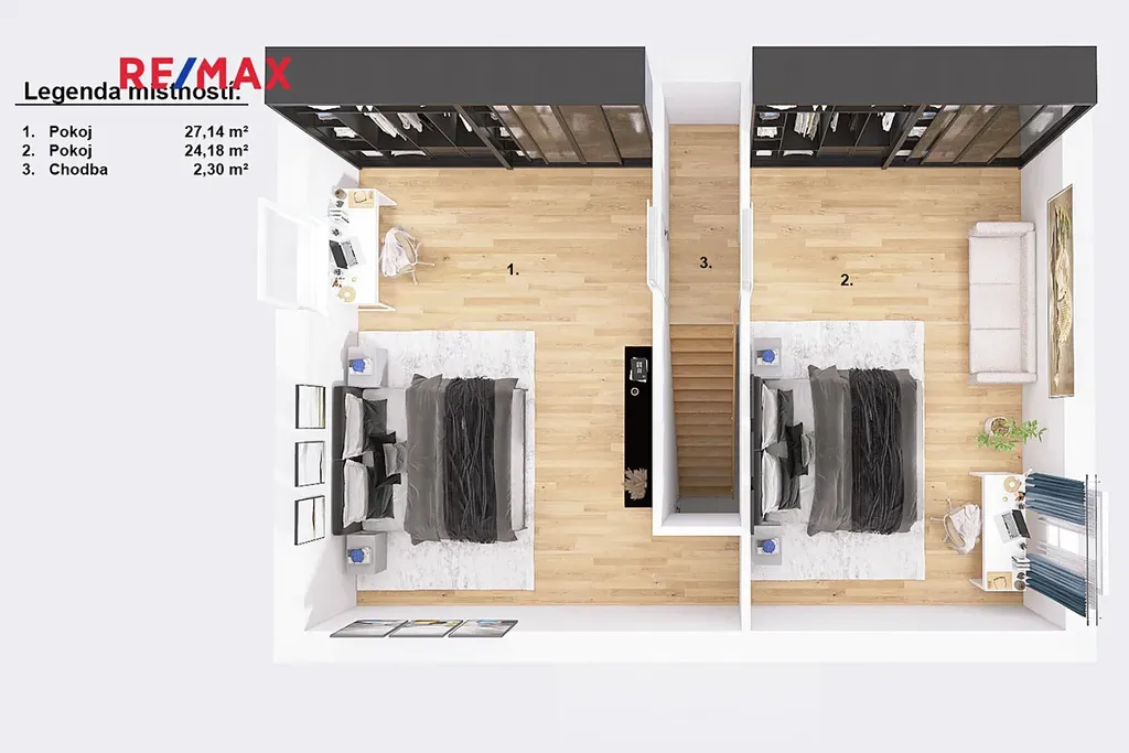 Dispozice 4+KK je promyšlená do posledního detailu. V přízemí vás přivítá prostorný obývací pokoj spojený s kuchyní, kde se o útulnou atmosféru postarají krbová kamna s výměníkem. Dále zde najdete koupelnu se sprchovým koutem, samostatnou toaletu, ložnici a praktickou technickou místnost. V patře pak na vás čekají další dvě světlé a pohodlné místnosti – ideální jako dětské pokoje, pracovna nebo prostor pro hosty.