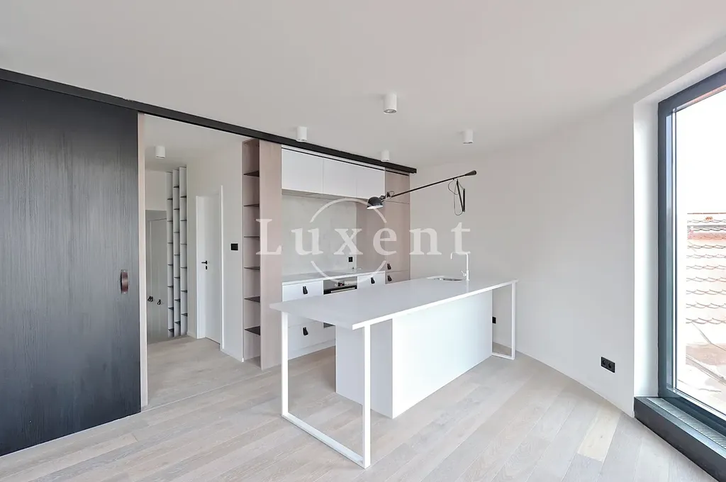 Dispozice nabízí vstupní chodbu, koupelnu, ložnici a prostorný obývací pokoj s kuchyňským koutem vybaveným všemi spotřebiči – indukční varnou deskou, digestoří, horkovzdušnou troubou, myčkou a lednicí s mrazákem. Součástí vybavení je i pračka se sušičkou. Rekonstrukce bytu proběhla ve vysokém standardu a byly zde použity nejkvalitnější materiály. Repasované dřevěné parkety, nová okna s dvouvrstvým sklem. Klimatizace ve všech místnostech.