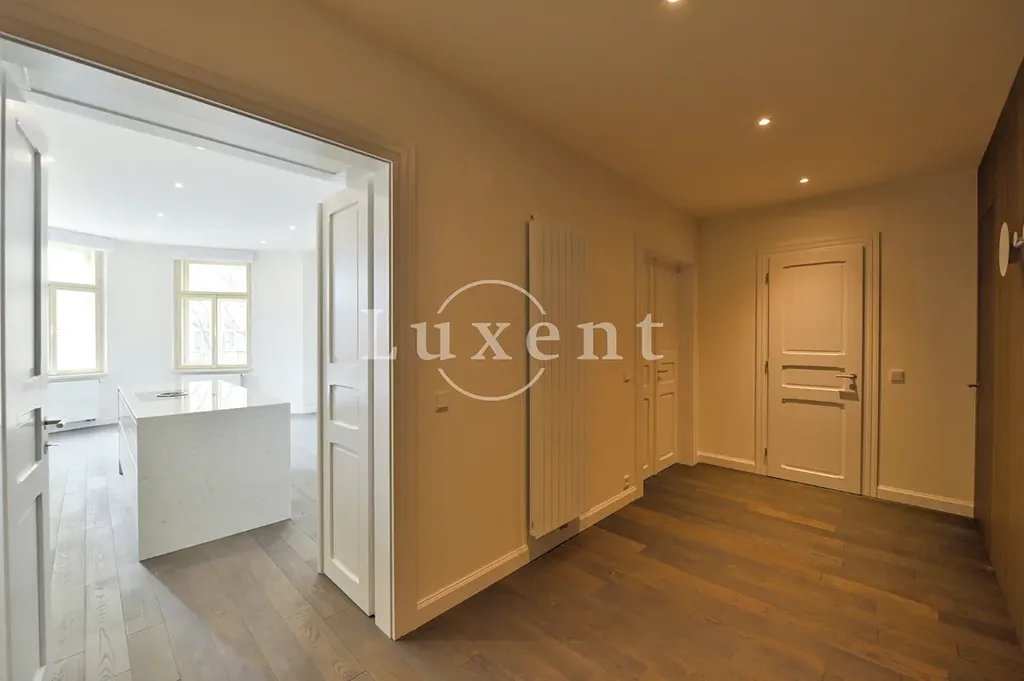 Rekonstrukce bytu proběhla ve vysokém standardu a byly zde použity nejkvalitnější materiály. Dubové dřevěné podlahy a kvalitní velkoformátová dlažba. Nová okna s dvouvrstvým sklem. Klimatizace ve všech místnostech. Podlahové vytápění v koupelnách. Vestavěné skříně a množství úložných prostor. Byt lze kompletně dovybavit nábytkem za vyšší nájemné.