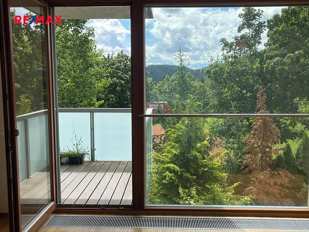 Dispozičně se jedná o prostorný velmi světlý byt 3+kk s krásnou terasou, praktickou komorou v bytě a velkým sklepem v suterénu domu. Obývací pokoj je propojený s halou s oknem a kuchyňským koutem (43m2). Obývací pokoj má, stejně jako přilehlá ložnice, vstup na terasu s otevřeným výhledem do zeleně. Z haly je vstup do další ložnice , koupelny , wc a komory. Celková výměra bytu je 99m2 . Na podlahách jsou parkety. Sanita Villeroy Boch. Kuchyně Oresi vybavená myčkou a elektrickým sporákem. Předokenní hliníkové žaluzie na dálkové ovládání. Veškerá občanská vybavenost i zastávka MHD v přímém sousedství objektu. Součástí je garážové stání v suterénu domu Zálohy na služby 4.000,- Kč/ 2 osoby + elektřina převod na nájemce. Podnájem pro max 3 osoby. Krásné a klidné bydlení na strategickém místě. Doporučujeme. Zájemce prosíme o zaslání mailu s bližšími informacemi na adresu makléře. Pronajímající si vyhrazuje právo vybrat nájemce na základě jím zvolených kritérií.