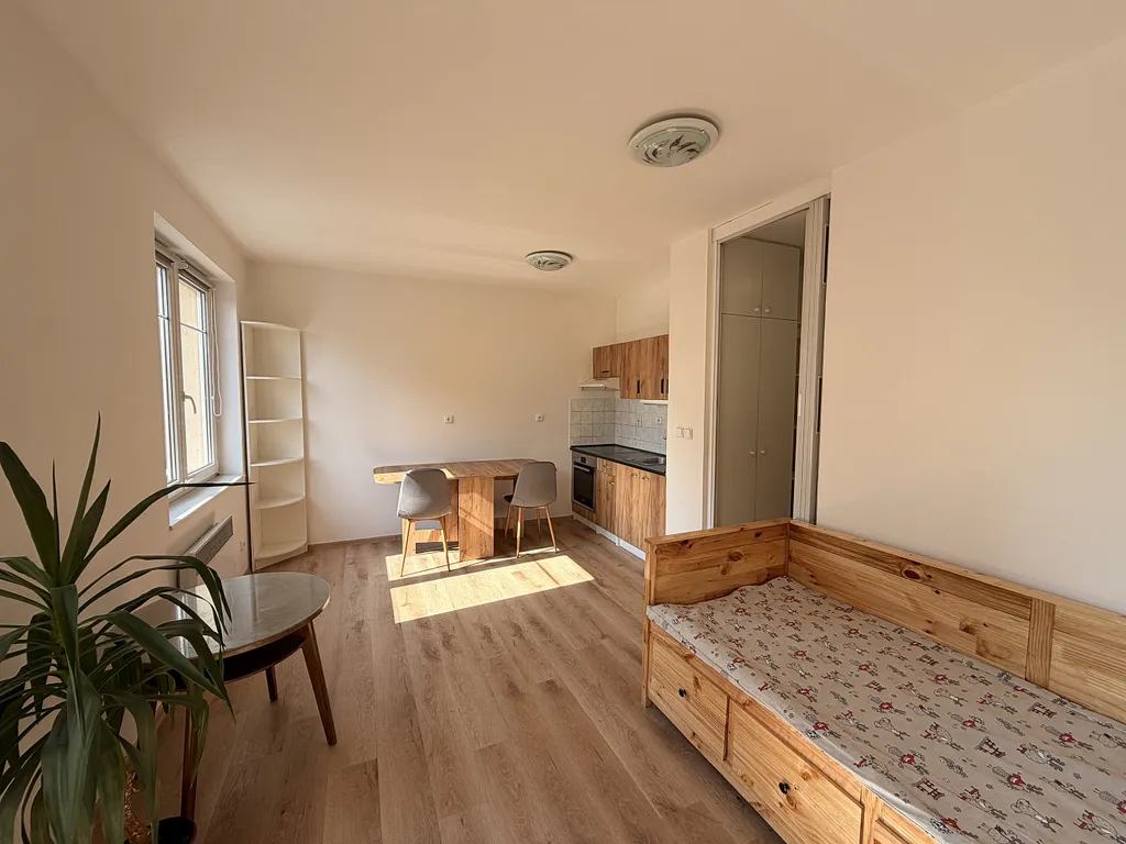 We are offering a studio with a balcony for rent in Mladá Boleslav, in Čechova Street. The apartment is located on the 3rd floor of a brick building without an elevator. It has been recently renovated and has a very bright and pleasant atmosphere that you will appreciate from the very first viewing.