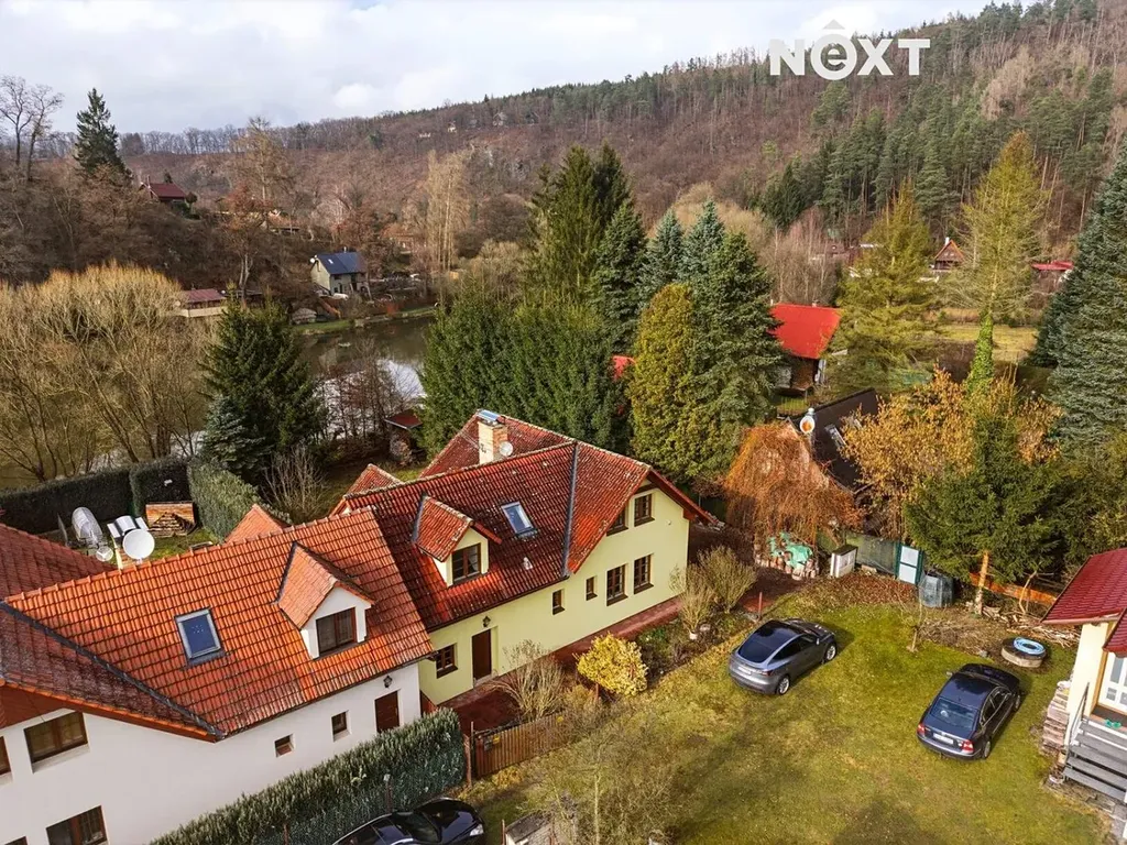 Dům stojí na obdélníkovém, ze tří stran oploceném pozemku o celkové výměře 567 m², z čehož pečlivě udržovaná okrasná zahrada tvoří 463 m². Ta nabízí dostatek prostoru pro relaxaci, dětské hry, zahradničení nebo jen pro nicnedělání, které je zde překvapivě návykové. Využít k tomu můžete rozlehlou terasu s výhledem na řeku. A pokud bude hlad, tak lze i něco ugrilovat v kamenném grilu.