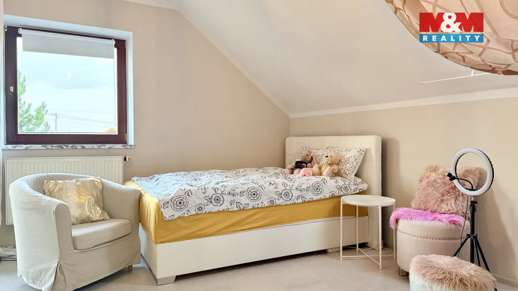 Dispozice 5+kk o celkové ploše 224 m² nabízí nadstandardní zázemí pro rodinný život bez kompromisů. Čtyři prostorné ložnice, dvě šatny, dvě koupelny, technická místnost i sklepy – vše navržené tak, aby každý člen rodiny měl své soukromí, a přitom všichni zůstali spolu.