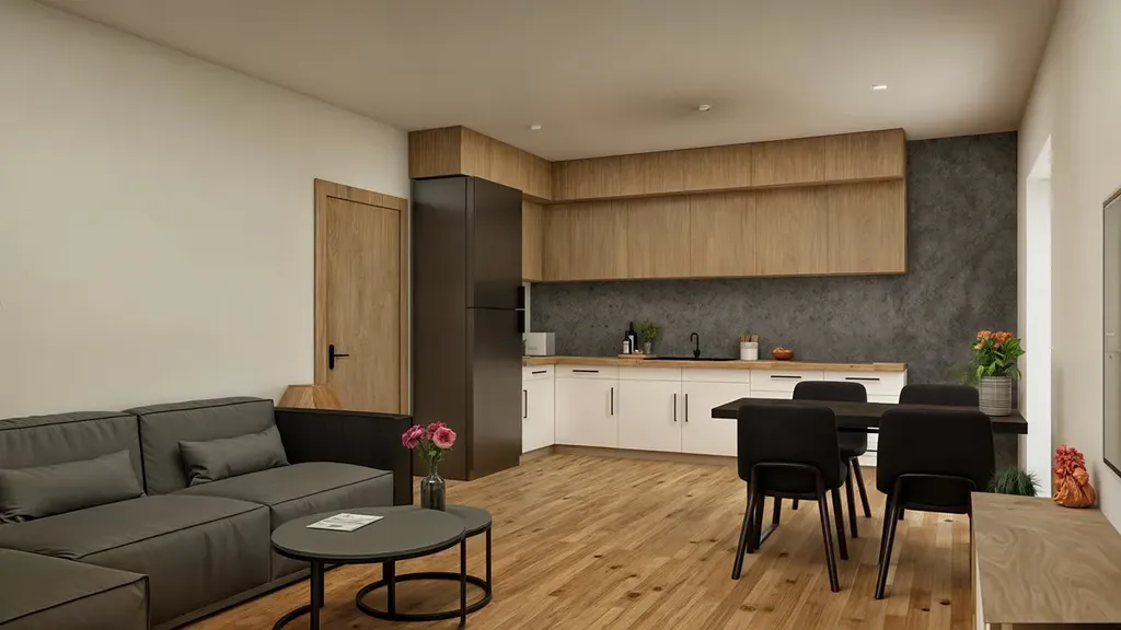 Bytová jednotka č.3 se nachází v 1 NP. V bytě se nachází zádveří , koupelna a wc, obývací pokoj s kuchyní, dále 2 pokoje, prostorná ložnice. Pozemek patřící k bytu je o velikosti 375m2.