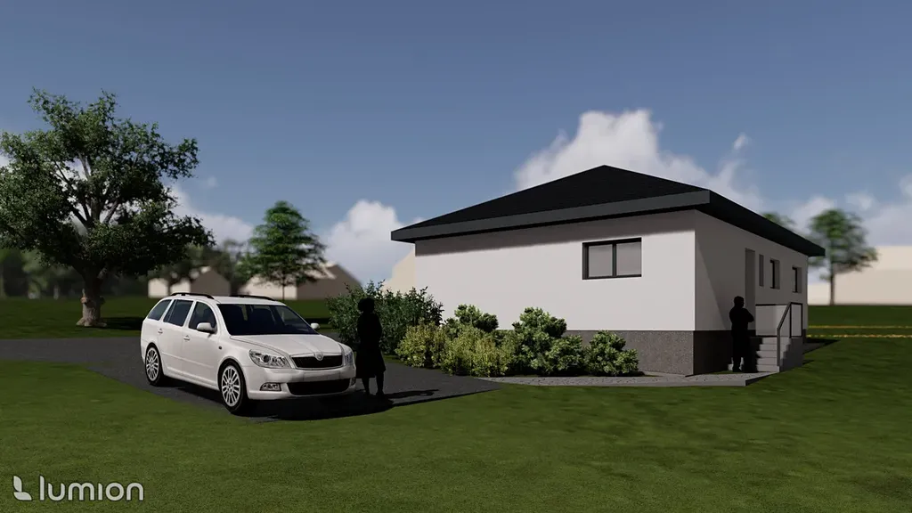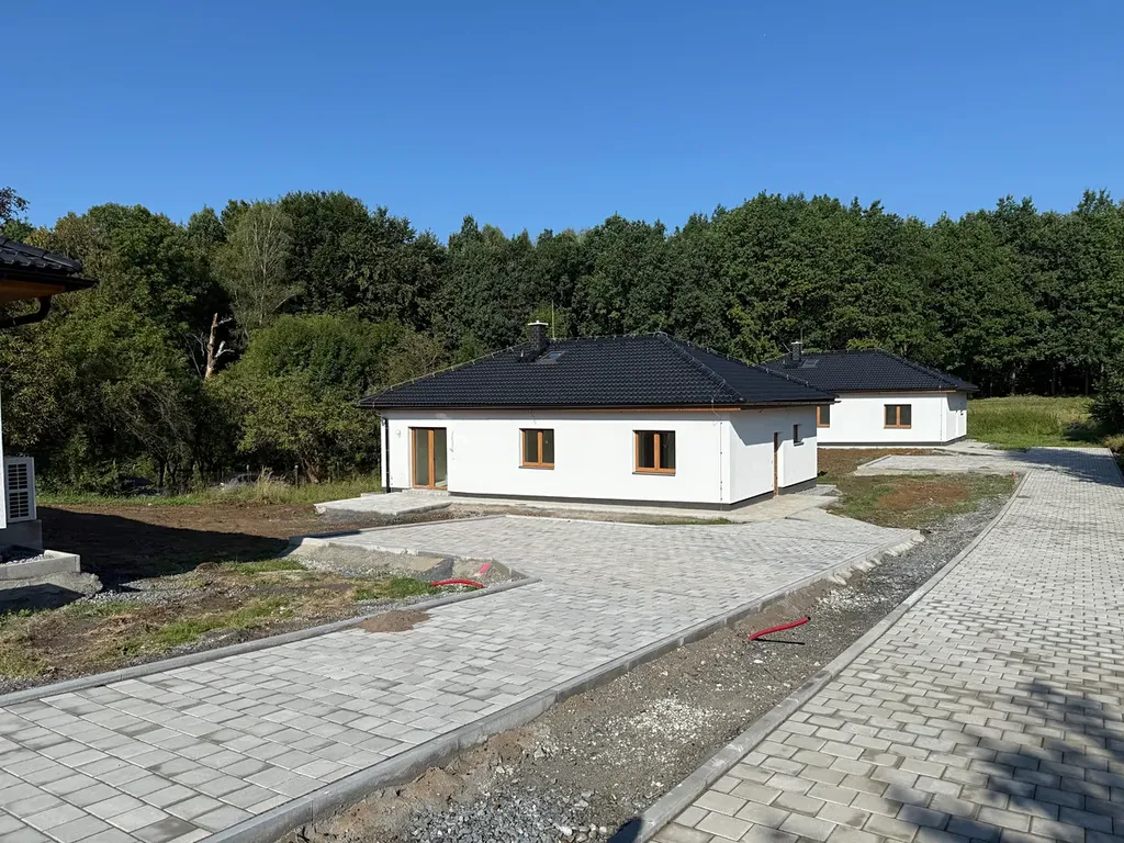 Dům nabízí 86 m2 užitné plochy, energetický štítek ,,B,,. Venkovní terasa, stání pro 2 automobily, příjezd. Vše ze zámkové dlažby.
