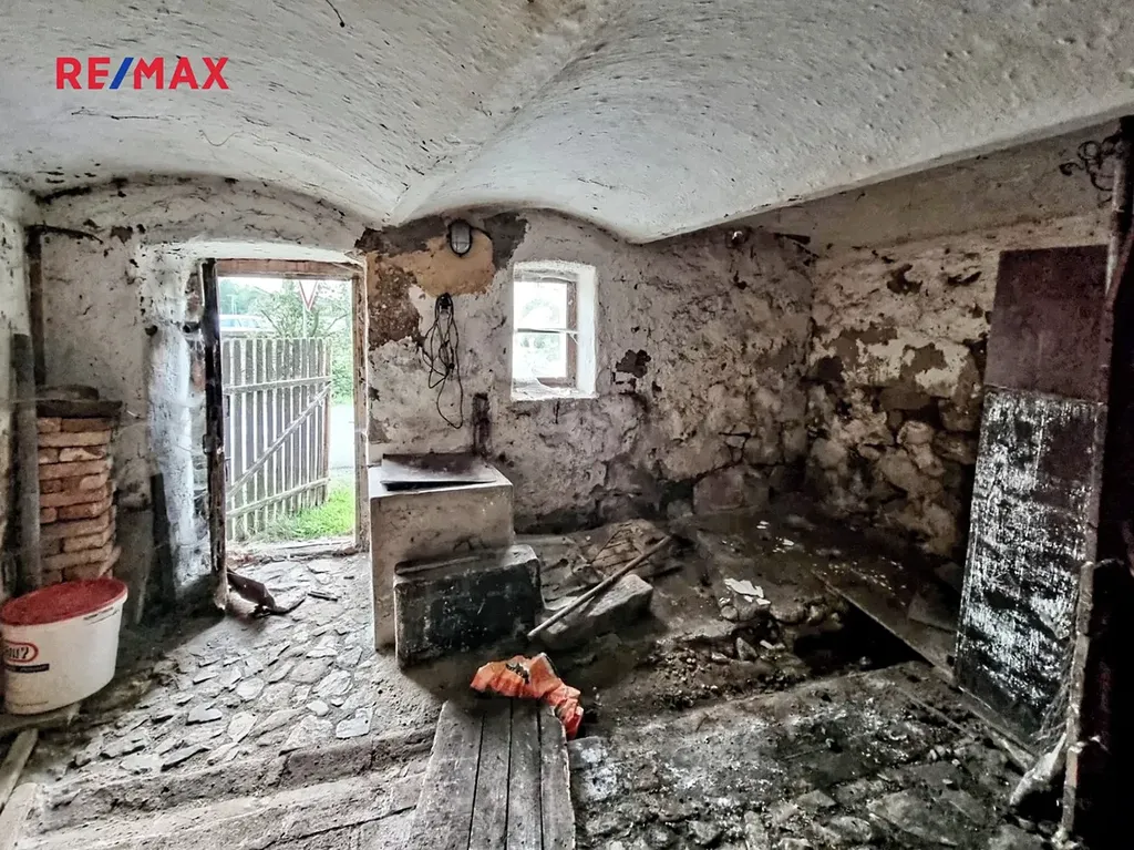 Nemovitost dohromady tvoří stodola (cca 90m2), jejíž součástí je sklípek, architektonicky velice zajímavý prostor bývalého chléva a dřevěný přístavek, který je rovněž v katastru veden jako zastavěná plocha. Navazující dům (cca 100m2), který je kompletně vyklizen, je určen ke generální rekonstrukci nebo k demolici.
